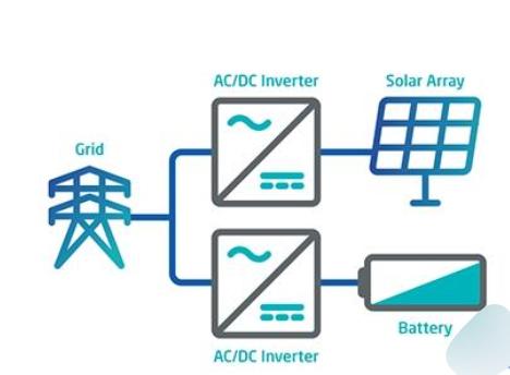 共址部署的交流耦合太陽能+儲能系統(tǒng):太陽能發(fā)電設施和儲能系統(tǒng)位于同一地點,與電網(wǎng)共享一個互連點或具有兩個獨立的互連點。然而,太陽能發(fā)電系統(tǒng)和儲能系統(tǒng)各自連接到單獨的逆變器,并且儲能系統(tǒng)儲器位于太陽能發(fā)電系統(tǒng)的旁邊。它們可以一起發(fā)送或獨立發(fā)送電力。